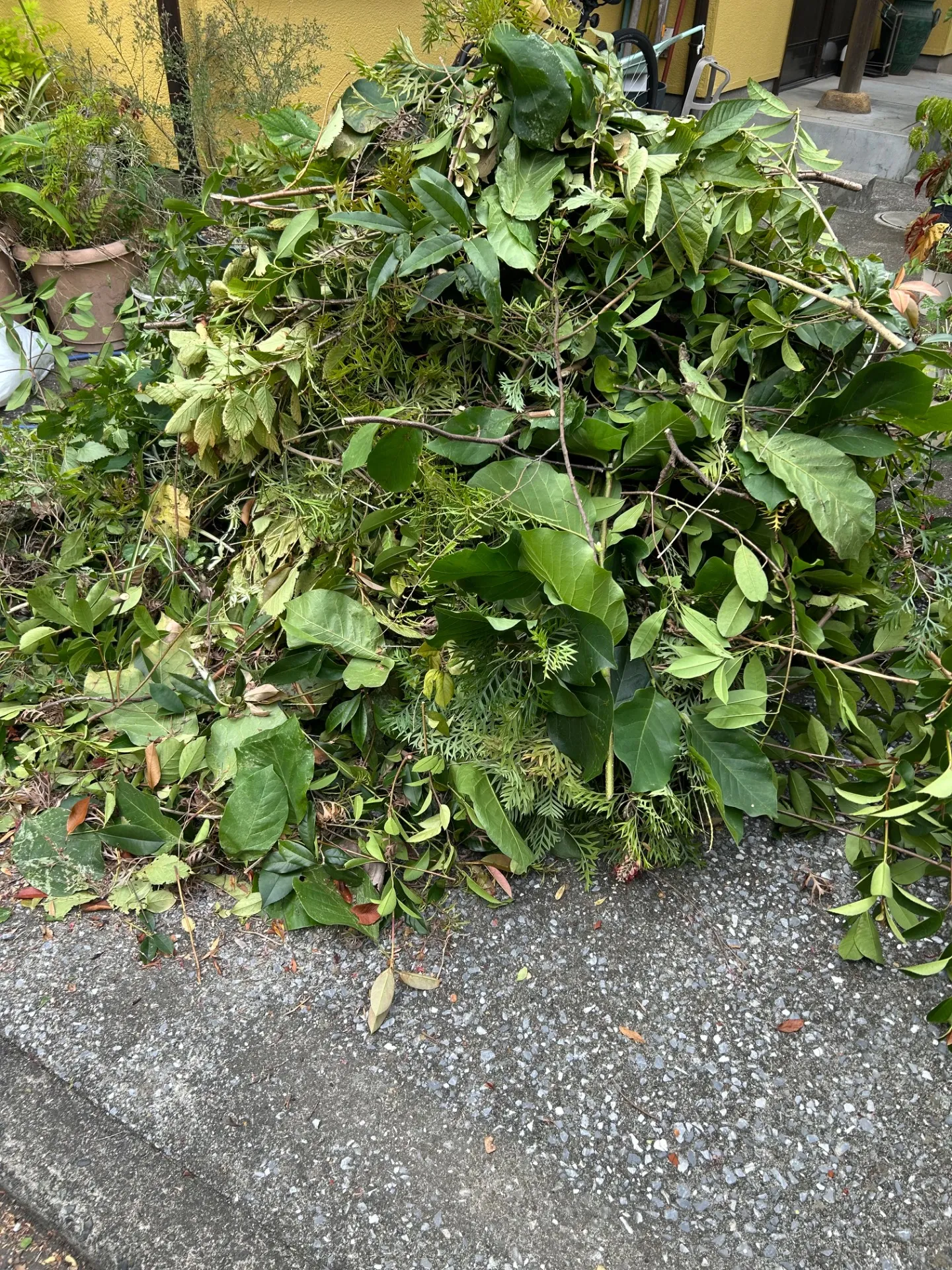 定期的にご依頼くださるお客様でお庭の伸びてしまった枝や葉っぱを高枝バサミや脚立を使い整えました。